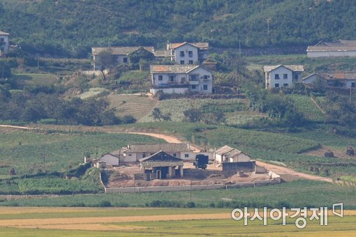북한이 일본 훗카이도 상공 방향으로 탄도미사일을 발사한 15일 오후 경기도 파주시 오두산통일전망대에서 북한 황해북도 개풍군 관산반도 일대가 적막한 모습을 보이고 있다.