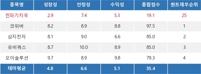 [표] 테마내 재무점수 상위 종목