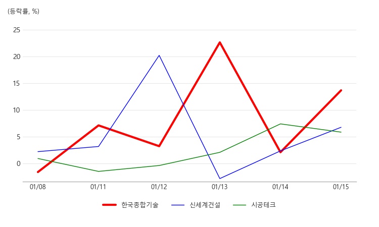 15일 테마파크 테마가 전일 대비 3.86% 상승하면서 강세를 보이는 가운데 관련주로 주목받고 있는 한국종합기술 한국종합기술 close 증권정보 023350 KOSPI 현재가 5,330 전일대비 40 등락률 +0.76% 거래량 66,549 전일가 5,290 2026.04.21 15:30 기준 관련기사 [e 공시 눈에 띄네] 코스피-25일 [e공시 눈에 띄네] 코스피-26일 한국종합기술, 테마파크 테마 상승세에 3.72% ↑ 이 전일 대비 20.85% 상승하며 급등하고 있다. 한국종합기술은 건설 엔지니어링 전문업체로 알려져 있다.