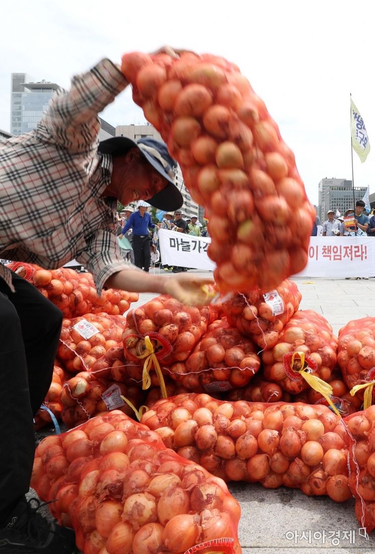 올초부터 지난달 17일까지 양파는 1만3715t이 수입됐다. 지난해 같은 기간 3027t의 4.5배나 됐다.