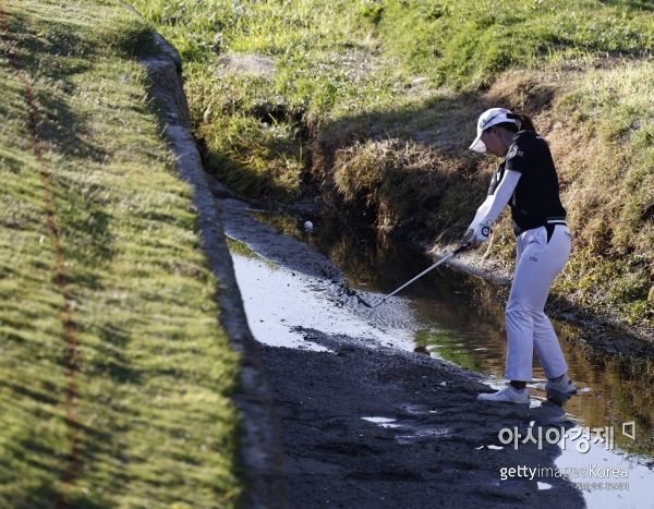 고진영이 진흙에 들어가 트러블 샷을 시도했다는 게 의외다. 공은 그러나 콘크리트 벽에 맞고 오히려 뒤쪽으로 날아갔고, 네번째 샷 역시 물에 빠졌다. 1벌타 후 ‘6온 2퍼트’, 결국 쿼드러플보기라는 치명타를 엊어맞았다. 마지막 18번홀(파3) 버디로 마음을 달랬다. "17번홀에서 큰 실수가 있었지만 후회는 하지 않는다"며 "내일 모든 에너지를 쏟아붓겠다"고 소개했다. 선두와 5타 차, 전날 7언더파 데일리베스트에 비추어 아직은 우승 경쟁이 가능하다.