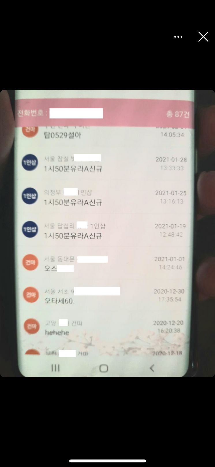 사회관계망서비스(SNS)를 통해 운영자에게 성매매 업소 이용 내역 조회를 의뢰하면 운영자는 자신이 갖고 있는 데이터베이스(DB)에서 연락처 검색을 통해 결과를 보내준다./사진=독자 게공