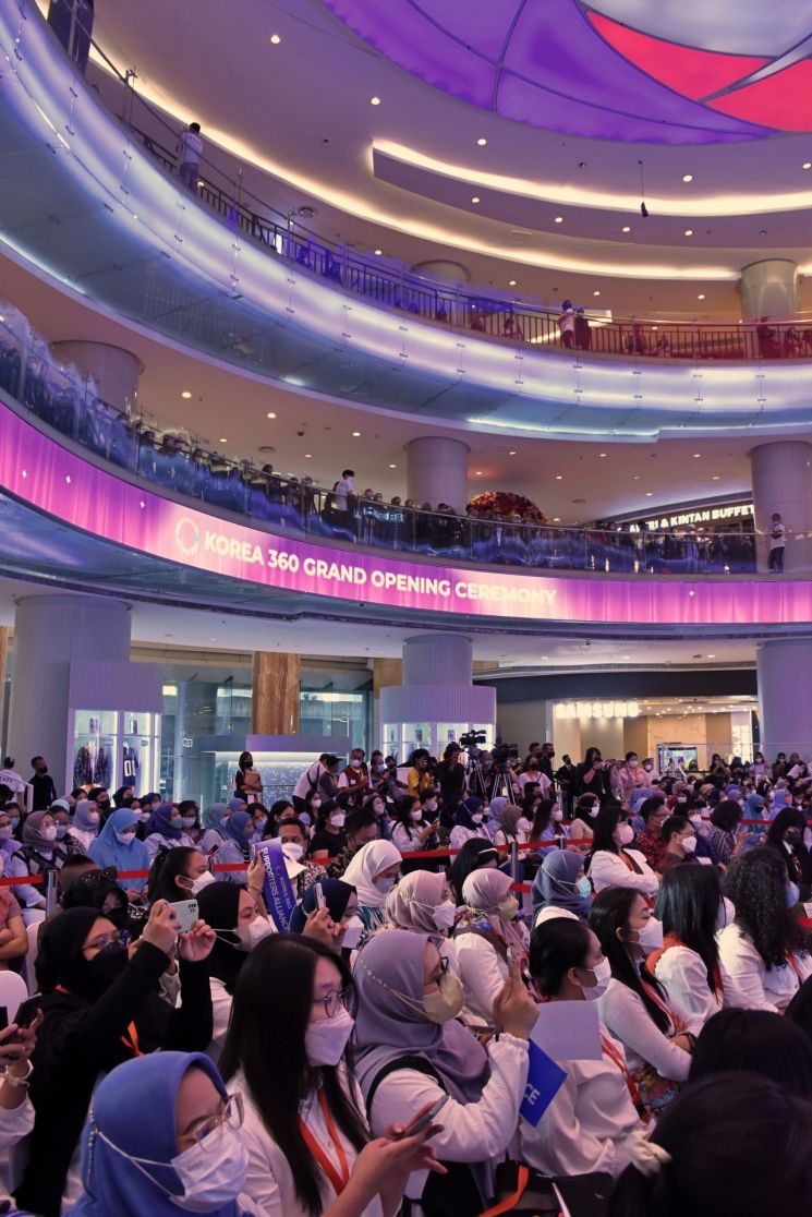 뜨거운 호응이 나온 이유는 더 있었다. 가수 겸 배우 옹성우가 개관 기념 팬 사인회를 했다. 등장과 동시에 곳곳에선 환호성이 터졌다. 이날 방문객 수는 약 1만5000여명. 인명 사고를 걱정할 필요는 없었다. 장소를 실내로 변경하고 경호원을 쉰 명 가까이 배치해서다. 입장권을 구한 팬들은 질서정연하게 이동했고, 그렇지 못한 팬들은 광장에 남아 생중계로 사인회를 지켜봤다. 김영수 콘진원 인도네시아비즈니스센터장은 "지난 10월 축구장 압사 사고 등이 벌어져 안전에 만전을 기했다. 통제를 잘 따라준 팬들에게 감사하다"고 했다.
