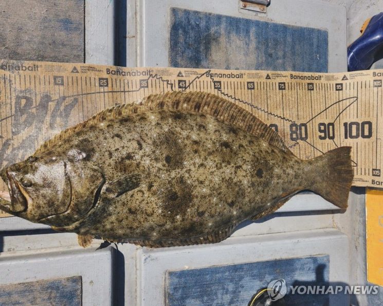 그는 지난 12일 오전 10시께 서귀포시 범섬 인근 바다에서 낚시하던 중 길이 98㎝∼1m의 광어를 잡았다. 장씨는 "낚싯줄이 끊어져 버릴 것 같아 걱정까지 들 정도였다"며 입질이 있고 난 뒤 20여분간 힘겨운 싸움 끝에 광어를 끌어 올렸다.