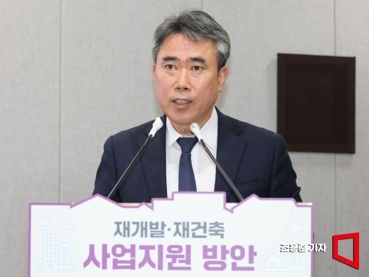 유창수 서울시 행정2부시장이 27일 서울 중구 서울시청 브리핑룸에서 신속하고 안정적인 주택공급을 위한 '재개발 재건축 사업지원 방안' 기자설명회를 하고 있다. 사진=조용준 기자 jun21@