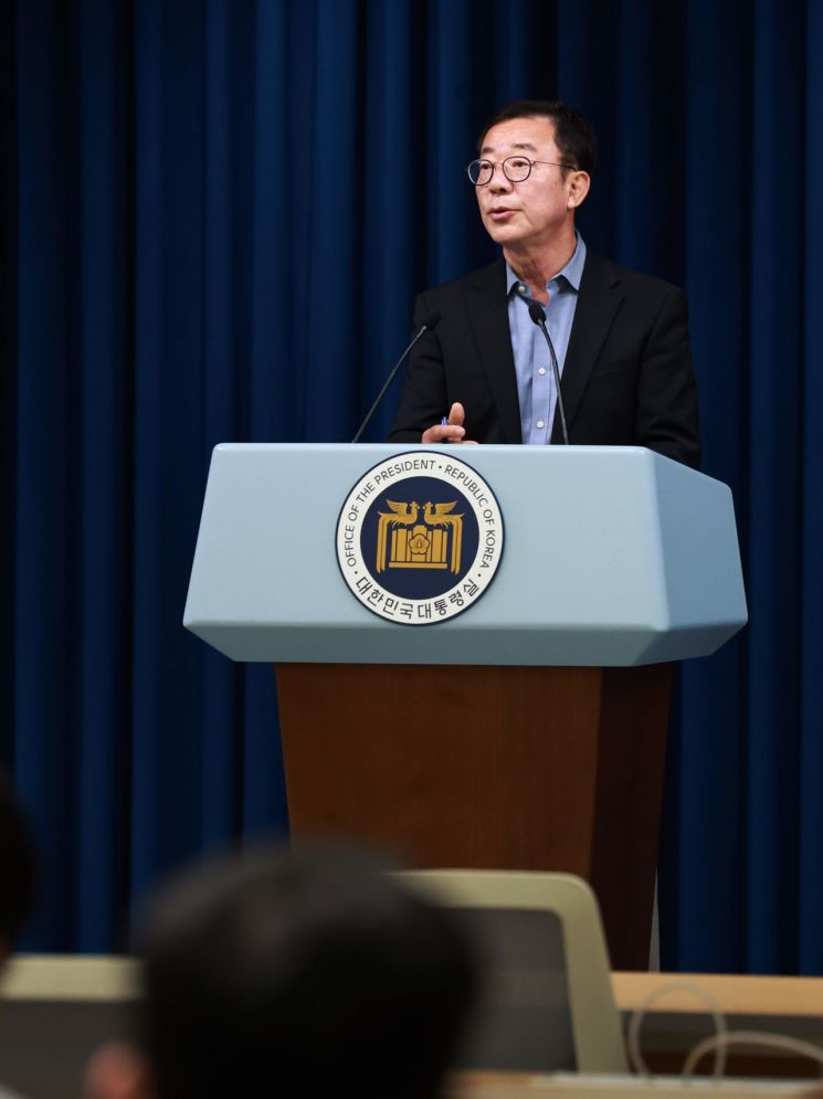 홍철호 대통령실 정무수석이 26일 서울 용산 대통령실 청사에서 윤석열 대통령과 더불어민주당 이재명 대표의 영수회담 관련 브리핑을 하고 있다. [이미지출처=연합뉴스]