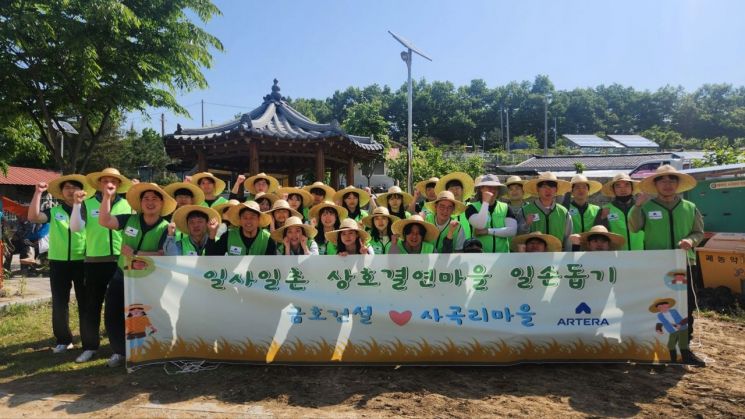 금호건설은 사곡리마을과 2014년부터 1사(社)1촌(村) 상호결연을 이어오고 있다. 매년 농번기(5·10월)에 마을을 찾아 봉사활동을 진행하는 동시에 판매에 어려움을 겪고 있는 농가를 지원해주기 위해 마을에서 직접 재배한 쌀을 구매, 금호건설 임직원에게 판매하고 있다. 판매금을 통해 조성된 기부금은 취약계층 아동 후원 및 재난구호 지원금으로 지급하는 ‘DOVE’s 캠페인’에 활용하고 있다.
