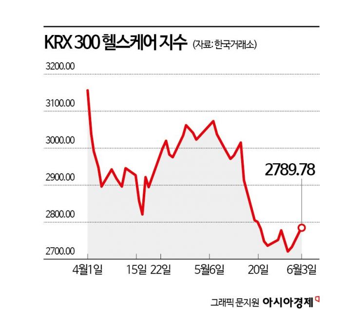 4일 한국거래소에 따르면 제약·바이오 등 헬스케어 섹터에 속하는 종목으로 구성된 KRX 300 헬스케어 지수는 지난 한 달간 8.42% 내리며 전 업종 중 가장 낮은 수익률을 보였다. 특히 HLB HLB close 증권정보 028300 KOSDAQ 현재가 62,400 전일대비 800 등락률 -1.27% 거래량 505,216 전일가 63,200 2026.04.21 15:30 기준 관련기사 최대 4배 투자금을 연 5%대 금리로...개별 종목, ETF 모두 가능 코스피, 사상 최고가 경신…외인·기관이 끌었다 달리는 말에 제대로 올라타려면? 투자금부터 넉넉하게 마련해야 가 미국 식품의약국(FDA) 신약 승인의 문턱을 넘지 못하며 하한가를 기록했고 삼성바이오로직스 삼성바이오로직스 close 증권정보 207940 KOSPI 현재가 1,588,000 전일대비 17,000 등락률 -1.06% 거래량 47,766 전일가 1,605,000 2026.04.21 15:30 기준 관련기사 코스피, 사상 최고가 경신…외인·기관이 끌었다 [기자수첩]'집단 연차'를 '파업'이라고 우기는 노조 삼성바이오로직스, AACR 첫 참가…CRDMO 전주기 사업 확장 시동 , 셀트리온 셀트리온 close 증권정보 068270 KOSPI 현재가 203,000 전일대비 2,500 등락률 -1.22% 거래량 446,662 전일가 205,500 2026.04.21 15:30 기준 관련기사 셀트리온 스테키마, 일본서 IV 제형 허가…크론병 적응증 확보 '기관 매수세' 코스피, 6200선 회복…코스닥도 상승 마감 셀트리온, 베그젤마 등 주요 제품군 유럽서 처방 확산 등 대형주도 약세를 보인 영향이 컸다.