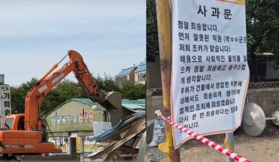 지난 2004년 경남 밀양에서 발생한 여중생 집단 성폭행 사건의 가해자가 일하는 곳으로 알려진 경북 청도 국밥집이 결국 철거됐다. 업주는 "사회적 물의를 일으켜 죄송하다"는 사과문을 내걸었다. [사진출처=온라인 커뮤니티 '보배드림']