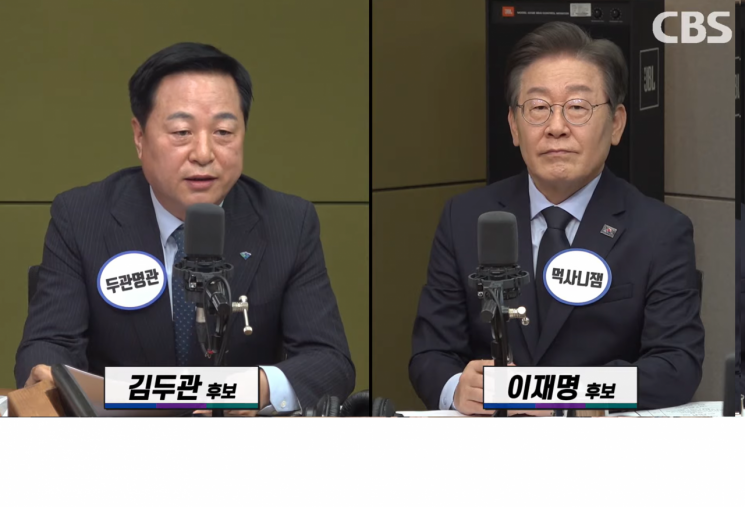 (왼쪽부터)김지수, 김두관, 이재명 더불어민주당 당대표 후보가 18일 오전 서울 양천구 CBS 사옥에서 열린 ‘CBS 김현정의 뉴스쇼 특집’ 더불어민주당 당대표 후보자 토론회를 진행하고 있다. (사진=CBS 김현정의 뉴스쇼 라이브 캡쳐)