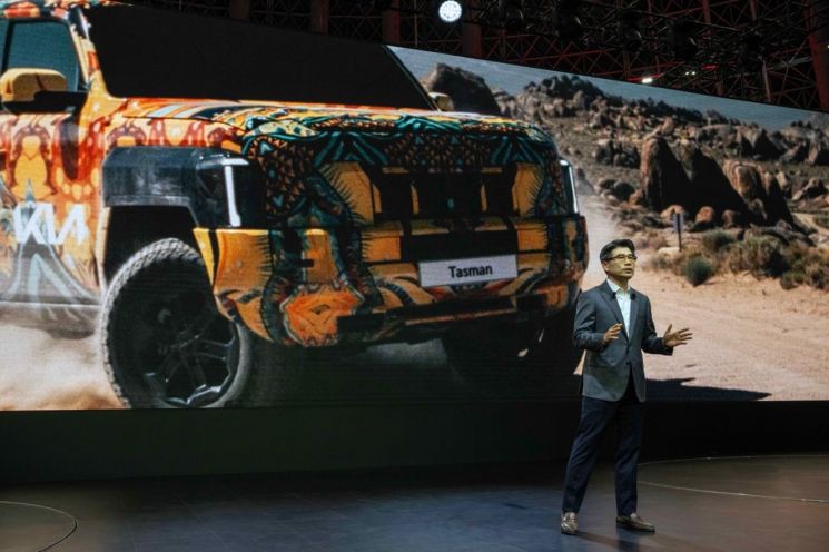 이날 기아는 중동 최대 자동차 전시회에서 브랜드 첫 픽업트럭인 타스만을 세계 최초로 공개했다.