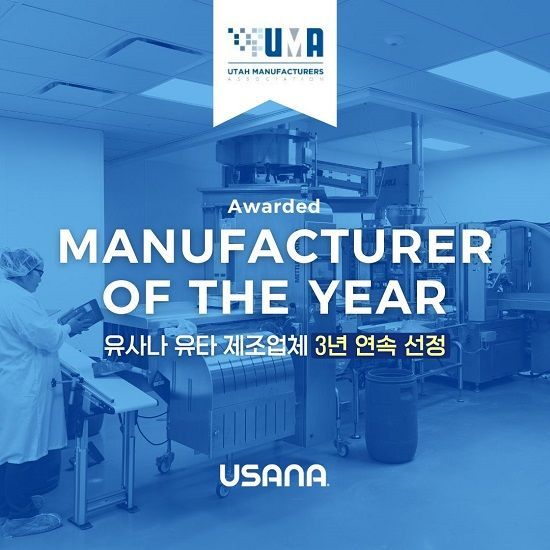 글로벌 세포과학 뉴트리션 전문기업 유사나헬스사이언스(이하 ‘유사나’)가 유타 제조업체협회로부터 ‘올해의 최우수 제조업체’에 3년 연속 선정되었다고 밝혔다.