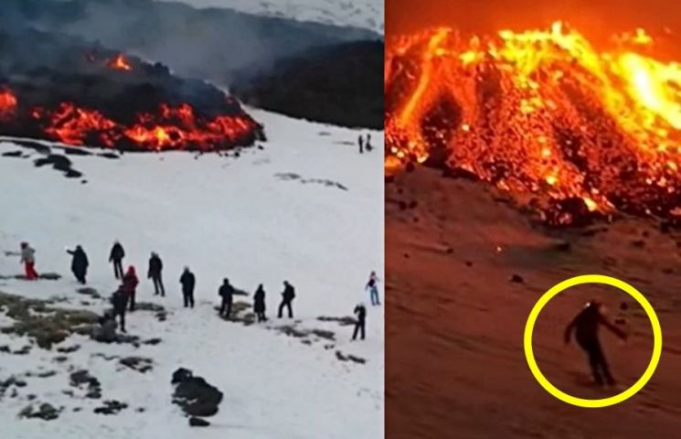 용암 옆에서 스키 타는 모습까지