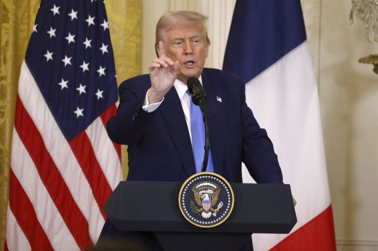 트럼프 대통령은 이날 워싱턴D.C. 백악관에서 에마뉘엘 마크롱 프랑스 대통령과 회담 뒤 공동 기자회견에서 캐나다와 멕시코에 예고한 관세에 대한 질문에 "한 달의 유예 기간이 만료되면 예정대로 제때 추진될 것"이라고 했다. 트럼프 대통령은 또 캐나다와 멕시코가 국경 문제를 해결하기 위해 충분히 행동했다고 보냐는 질문에는 답하지 않았다.