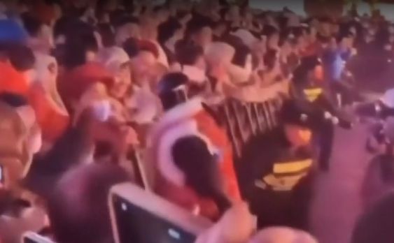 중국 톈진의 한 춘제 축제 현장에서 휴머노이드 로봇이 손을 내민 관람객의 머리를 들이밀고 달려드는 일이 발생해 진행요원이 휴머노이드를 제지했다. 조 로건 인스타그램.