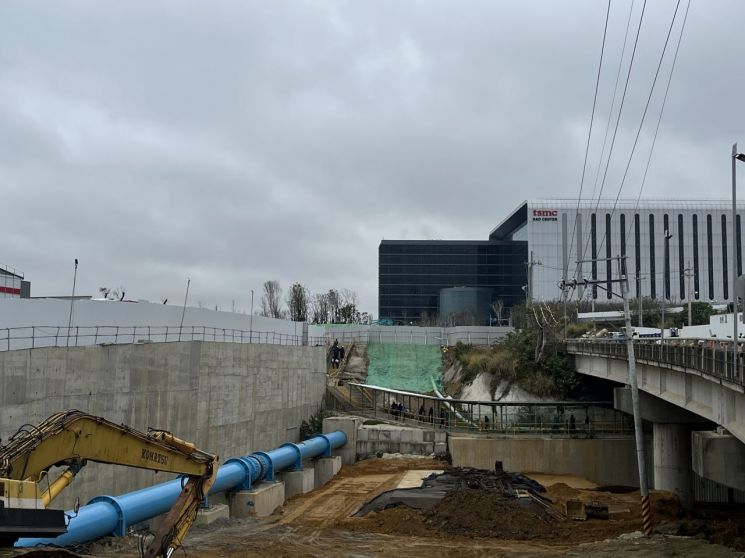지난 20일 대만 신주현 바오산에 위치한 신주과학단지의 한 도로와 교량에서 확장 공사가 진행되고 있다. 이 도로의 5㎞ 반경에는 TSMC 본사와 공장 등이 다수 밀집해있다. 이 때문에 단지 일대는 출퇴근 시간 유동인구가 몰려 교통체증이 심각한 상황이다. (사진 출처= 김현정 기자)