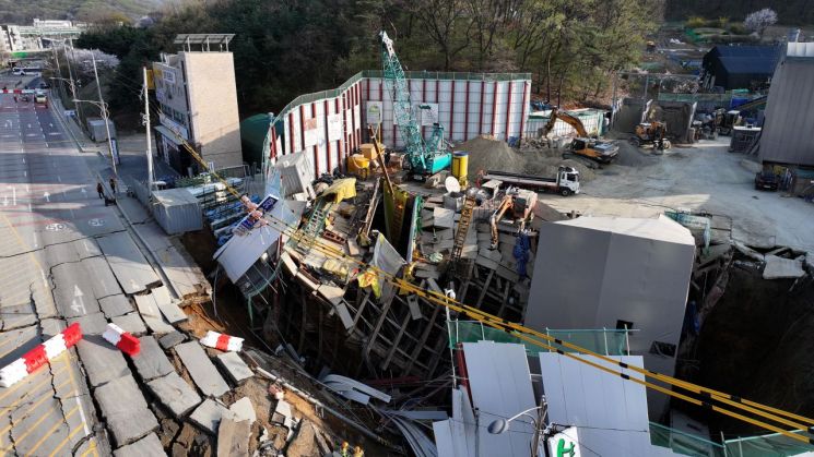 이 사고로 공사 현장에 있던 굴착기 기사 A씨가 지하에 고립된 상태며, 공사 근로자 B씨는 실종 상태다. A씨는 휴대전화 통화가 가능한 상태며, 자세한 부상 정도는 알려지지 않았다. 소방 당국은 드론을 띄워 A씨의 위치를 파악해 구조 작업을 벌이는 한편 휴대전화 위치 추적 등을 통해 B씨 소재를 파악 중이다.