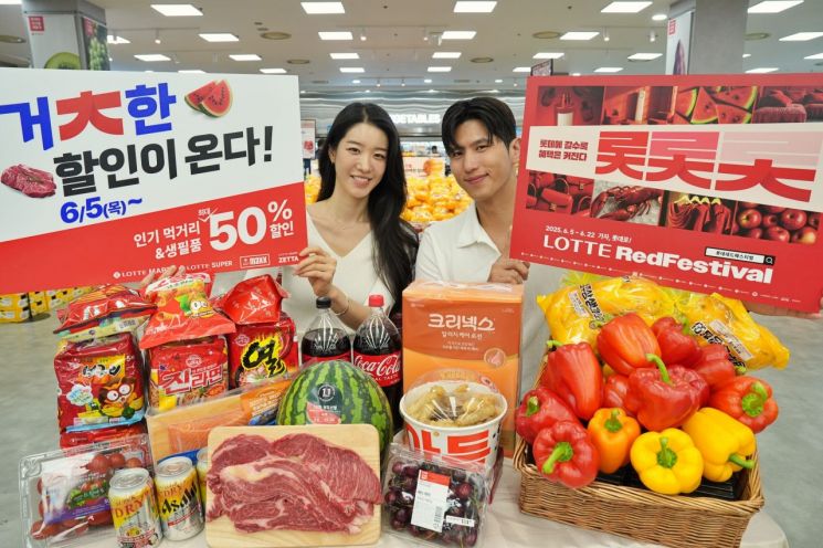 '롯데레드페스티벌'은 롯데마트를 포함한 롯데그룹 20개 참여사가 동참하는 연중 최대 규모의 통합 쇼핑 축제다. 이번 행사는 롯데마트, 롯데슈퍼, 롯데마트 맥스, 온라인몰 롯데마트 제타까지 함께하는 온·오프라인 통합 행사로 마련됐다.
