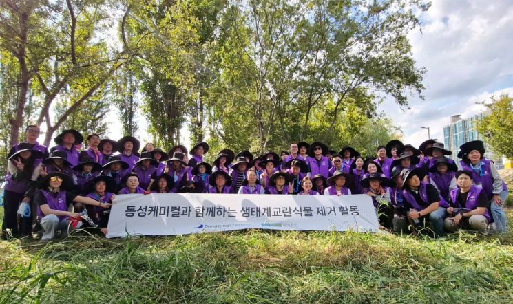 동성케미컬은 지속가능경영의 일환으로 최근 서울 이촌한강공원 일대에서 생물다양성 보전 활동을 전개했다고 10일 밝혔다. 활동에 참여한 임직원들은 가시박, 환삼덩굴, 단풍잎돼지풀 등 생태계 교란 식물을 제거했다. 이들 식물은 토착 식물의 서식지를 잠식하고 생태계 균형을 위협하는 대표적인 교란 식물로 꼽힌다.