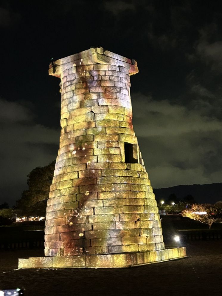 신라 선덕여왕 때 건립된 첨성대는 높이 약 9m, 27단으로 쌓아 올린 동양 최고(最古)의 천문대다. 이번 영상은 기존 투광조명 방식을 벗어나 프로젝션 매핑 기술로 외벽 전체를 활용해 신라의 천문학과 문화를 재현했다.