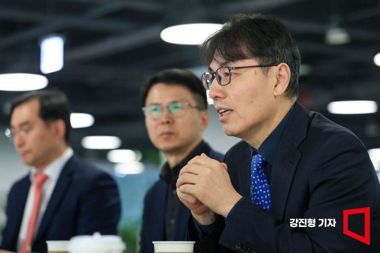 김건 한국핀테크지원센터 이사장이 6일 서울 마포구 프론트원에서 열린 '아시아경제-한국핀테크지원센터, 디지털자산 및 핀테크 산업 협력 업무협약식'에 앞서 장범식 아시아경제 대표와 의견을 나누고 있다.
