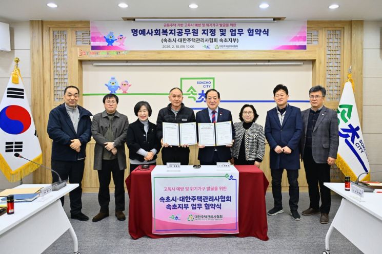 이병선 속초시장은 "최근 1인 가구 증가로 이웃 간 교류가 줄어들면서 고립 위험이 커지고 있다"며 "관리사무소는 현장에서 생활 흐름을 가장 가까이 확인할 수 있는 중요한 거점인 만큼, 이번 협약을 통해 위기 징후를 조기에 발견하고 필요한 복지서비스로 신속히 연계해 시민이 체감하는 복지안전망을 구축해 나가겠다"고 밝혔다.