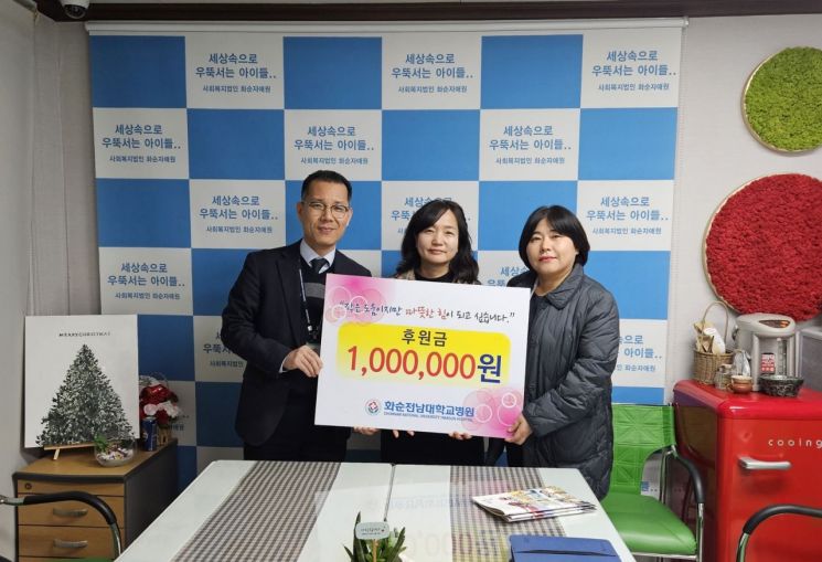 화순전남대병원은 지난 10일 소향원과 화순자애원, 해피타운 등 지역 사회복지시설 3곳을 방문해 각 시설당 100만 원씩 총 300만 원의 후원금을 전달했다.