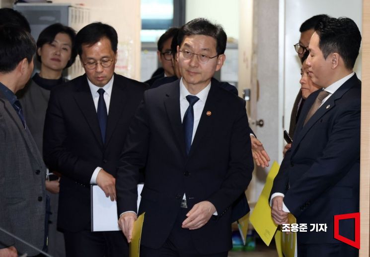 윤창렬 국무총리실 국무조정실장이 12일 서울 종로구 정부서울청사에서 12.3 불법계엄 관련 '헌법존중 정부혁신 TF 조사결과' 발표를 위해 입장하고 있다.