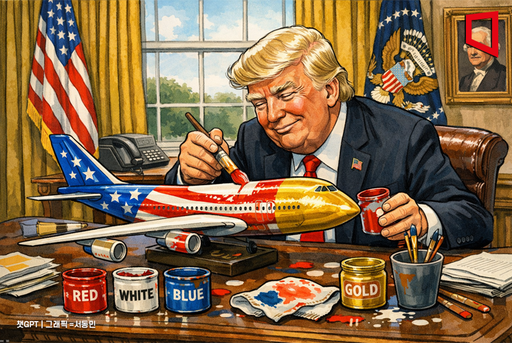 에어포스원도 트럼프 취향대로 꾸민다…황금·성조기 빛깔로 도색
