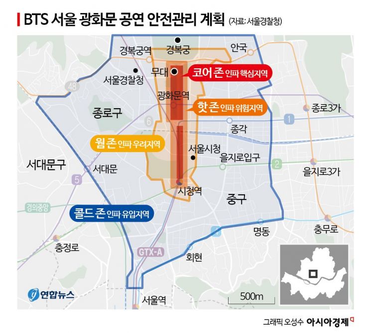 경찰은 공연 당일 광화문 광장과 인근 도심에 최대 26만명에 달하는 인파가 몰릴 것으로 내다보고 있다. 전 세계 팬들은 사회관계망서비스(SNS) 등을 중심으로 벌써 경복궁과 광화문에 큰 관심을 나타내고 있다.