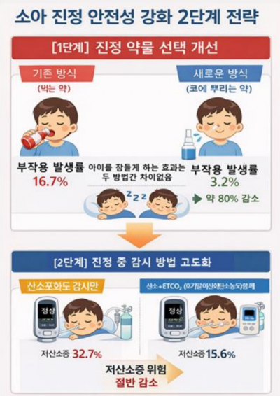 연구팀은 또 약물 투여 방식뿐 아니라 환자의 상태를 살피는 '모니터링'의 중요성도 강조했다. 기존에는 혈액 내 산소 농도를 측정하는 '산소포화도 감시'에 의존했으나 이는 호흡 이상을 실시간으로 감지하기엔 시차가 발생하는 한계가 있었다. 이에 18세 미만 소아·청소년 197명을 대상으로 숨을 내쉴 때 나오는 이산화탄소 농도를 측정하는 '호기말이산화탄소(ETCO₂) 모니터링'을 병행했고, 그 결과 위험 상황을 조기에 인지함으로써 저산소증 발생률을 32.7%에서 15.6%로 절반가량 감소시킬 수 있었다.