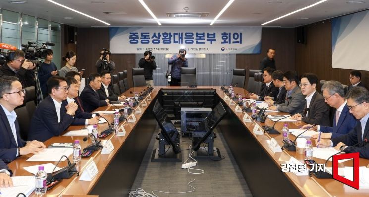 김정관 산업통상부 장관이 9일 서울 중구 대한상공회의소에서 열린 '중동상황대응본부 회의 겸 석유시장 점검회의'에 참석해 모두발언 하고 있다.