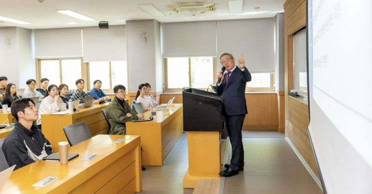 이날 '법률가의 길'을 주제로 강의한 안대희 석좌교수는 예비 법조인들에게 "법률가로서 확고한 기준과 가치관을 세워야 한다. 흔들리지 않는 기준을 세우고 판단하는 힘, 그것이 곧 '리걸마인드'다"고 강조했다. 특히, 검사와 대법관, 변호사 등 법조인으로서 마주한 실제 고민과 성찰의 경험을 바탕으로, 예비 법조인이 갖춰야 할 태도와 사회적 책임 의식을 학생들과 공유해 이목을 집중시켰다.