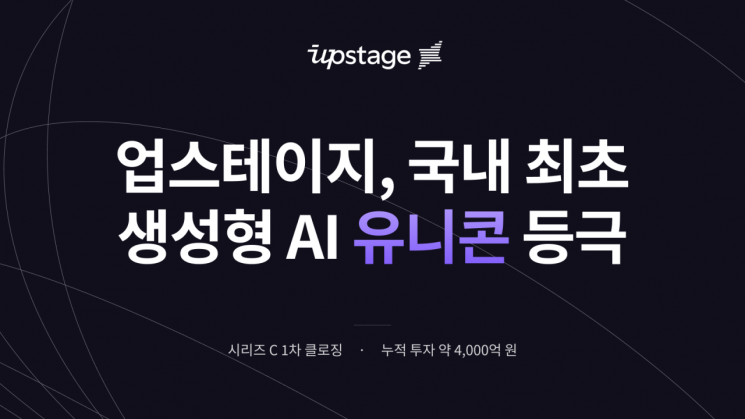 업스테이지가 기업가치 1조원 이상을 인정받으면서 국내 생성형 인공지능(AI) 기업 최초로 유니콘 기업 대열에 합류했다.