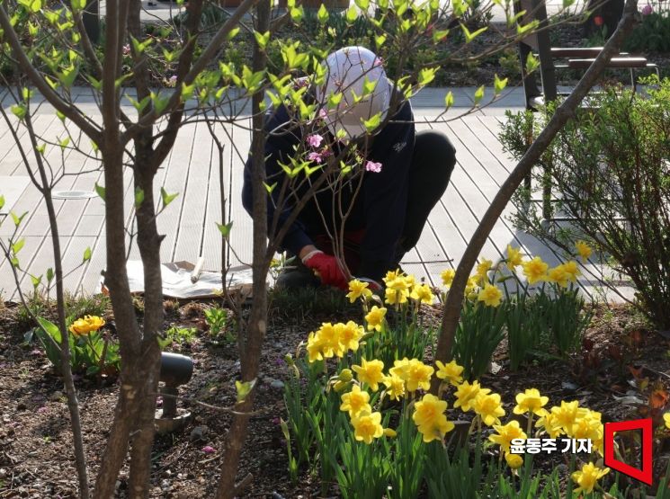 자연스레 찾아온 줄 알았던 화사한 도심 속 봄 풍경 뒤에는 누군가의 땀방울이 숨어 있습니다. 붉은 장갑을 낀 다정한 손길이 메마른 땅에 생명력 넘치는 노란 수선화를 심어 냅니다. 우리가 무심코 지나치며 누리는 도심의 찬란한 봄날은 이렇듯 보이지 않는 수고와 정성으로 빚어진 따뜻한 작품입니다.(광화문 광장에서)