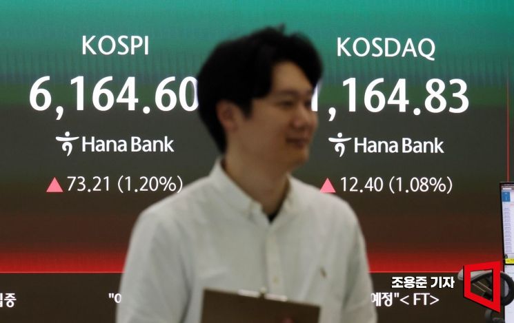 미국과 이란의 2차 협상 기대감에 뉴욕증시의 S&P 500 지수가 사상 최고치를 경신한 가운데 국내증시도 1% 가까이 상승 출발한 16일 서울 중구 하나은행 본점 딜링룸에서 직원이 증시와 환율 등을 모니터하고 있다. 이날 코스피는 전 거래일 대비 58.10p(0.95%) 오른 6,149.49에 장을 시작했다.