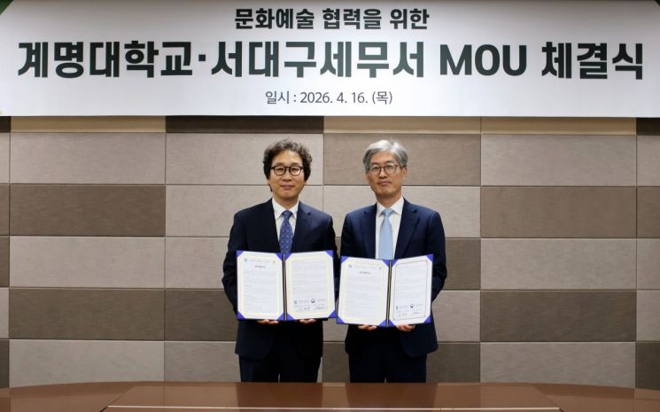 계명대학교 미술대학(학장 김윤희)과 서대구세무서(서장 임종철)는 16일 서대구세무서에서 문화예술 전시 협력을 위한 업무협약(MOU)을 체결했다.