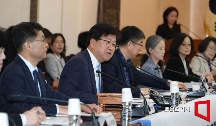 최교진 교육부장관이 17일 서울 종로구 정부서울청사에서 열린 영유아교육 보육통합 추진위원회에 참석해 발언하고 있다.