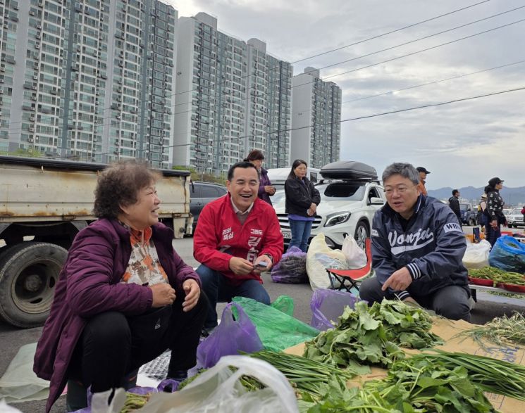 김진태 후보, 원주 농업인 새벽시장 개장식 참석…"농업 예산 확대 등 적극 지원"