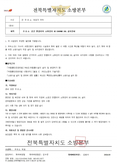전북소방본부 사칭 ‘리튬이온 소화기 강매’ 사기 주의