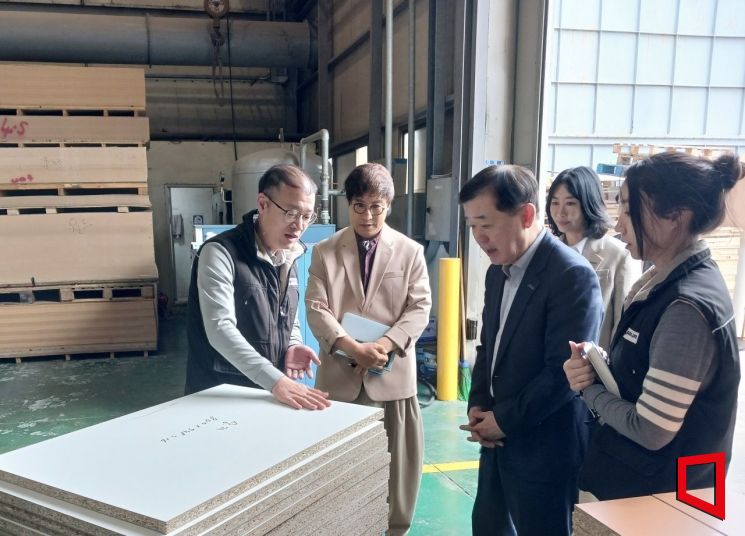 이태식 한국중소벤처기업유통원 대표가 부산 소재 가구 제조 중소기업 '월드퍼니처'를 방문해 판로 애로사항 등 의견을 청취했다.