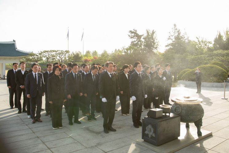 '용광로 선대위' 띄운 정원오, 현충원서 민주당 '원팀' 결의