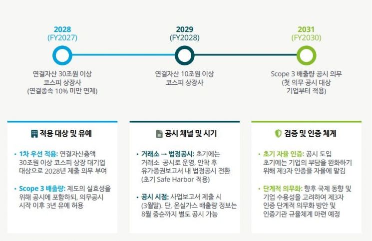 한국 딜로이트 그룹은 'KSSB 기반 ESG 의무공시 대응 전략' 보고서를 발간했다고 21일 밝혔다. ESG 의무공시란 2028년부터 연결자산총액 30조원 이상 코스피 상장사를 중심으로 시작해, 이후 10조 원 이상 기업으로 확대되는 방안이 유력하다.