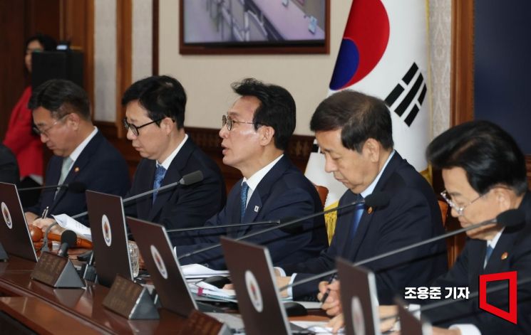 김민석 국무총리가 21일 서울 종로구 정부서울청사에서 열린 국무회의 겸 비상경제본부회의에 참석해 발언하고 있다.