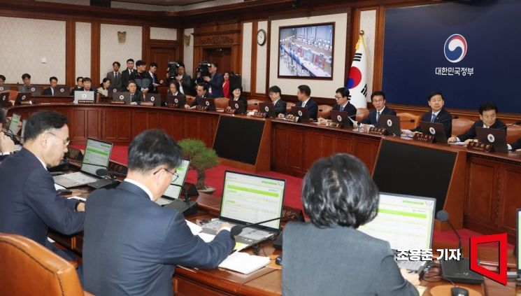 김민석 국무총리가 21일 서울 종로구 정부서울청사에서 열린 국무회의 겸 비상경제본부회의에 참석해 발언하고 있다.
