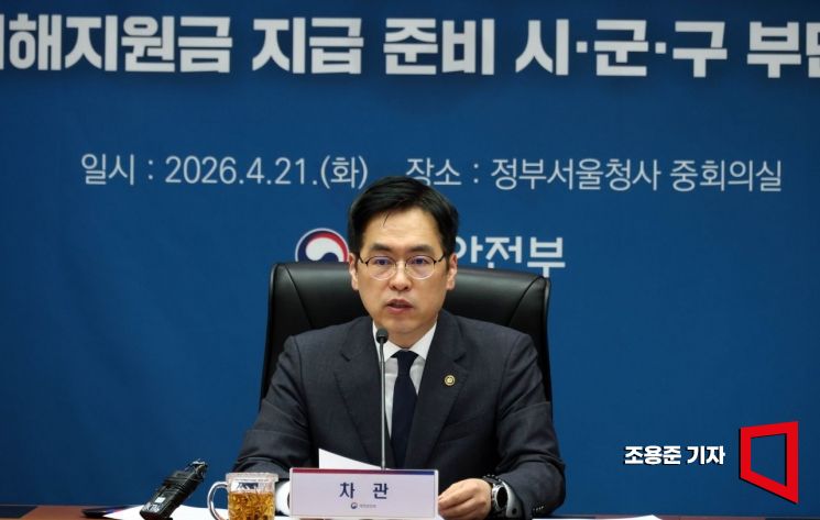 김민재 행정안전부 차관이 21일 서울 종로구 정부서울청사에서 열린 고유가 피해지원금 시군구 준비상황 영상점검회의에 참석해 발언하고 있다.