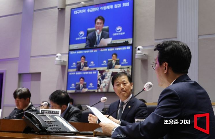김민석 국무총리가 21일 서울 종로구 정부서울청사에서 열린 대구지역 응급환자 이송체계 점검회의에 참석해 발언하고 있다.