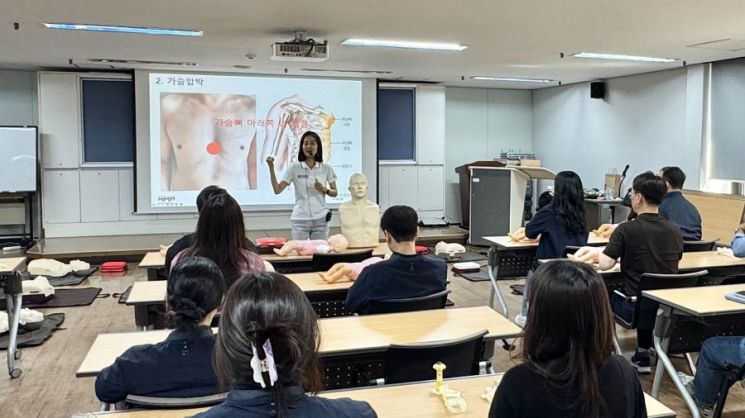 이번 교육은 사업장 내에서 발생할 수 있는 응급상황에 대비해 임직원들의 실질적인 대응 역량을 높이기 위해 마련됐으며, 개정된 심폐소생술 가이드라인을 반영해 이론과 실습 중심으로 진행했다.
