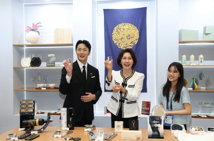 또한 김 여사는 술을 따르면 잔 표면의 선비 얼굴이 붉게 변하는 소주잔을 관람객들에게 소개하며 "재미있는 아이디어 상품이니 한번 사용해 보시라"고 권했고, BTS와의 협업으로 제작된 숄더백을 직접 착용해 보는 등 한국 문화상품에 대한 애정도 드러냈다.