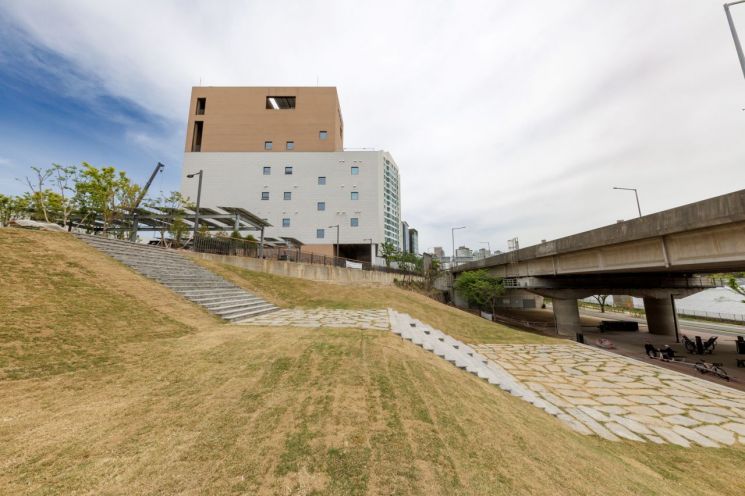마포365구민센터와 한강은 가까이 있지만 직접 이어지는 길이 없었다. 주민들은 그동안 한강에 가려면 멀리 돌아가야 했다. 잔디로 개통으로 이런 불편이 해결됐다. '잔디를 밟으며 한강으로 향하는 길'이 이번 사업의 콘셉트다. 단순 이동 통로가 아닌 도심 속 쉼터로 쓰일 수 있도록 설계했다.